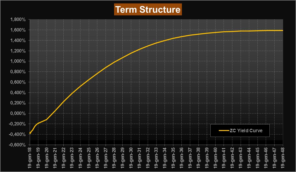 Riprendono a salire rendimenti impliciti del mercato obbligazionario, che in questa settimana hanno allargato di diversi basis points, e conseguentemente le obbligazioni hanno quindi perso un po’ di terreno in termini di prezzo, per lo meno quelle maggiormente esposte al rischio tasso. Ora, come ricorderete, avevamo in piedi due ipotesi sul mercato obbligazionario e i recenti movimenti della curva – come vedremo tra poco analizzando il grafico della struttura a termine dei tassi – inizia a farci propendere per quella che vorrebbe un mercato obbligazionario disposto a concedere progressivamente rendimenti sensibilmente migliori rispetto a quelli dei mesi scorsi. Come più volte detto, per quest’anno saranno molto importanti le dinamiche dell’inflazione (che è attesa in rialzo, soprattutto negli USA a seguito della riforma fiscale di Trump), poiché potrebbe scompigliare i piani delle Banche Centrali e costringerle ad imprimere una stretta maggiore sulle politiche monetarie.