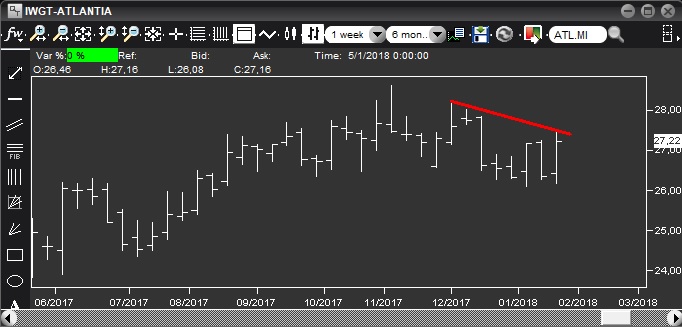 Pur in un panorama poco incoraggiante, mi sento comunque di indicare l'unico buy che potrebbe avere senso anche in caso di forte correzione del mercato: Atlantia. Si tratta infatti di un titolo capace di salire anche in mercato ribassista. Se quindi dovesse entrare il segnale lo seguirei.