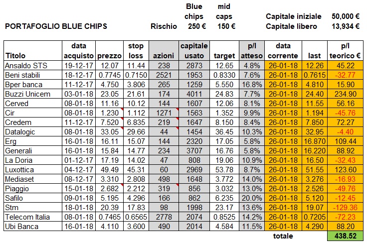 Portafoglio contrastato ma comunque in attivo teorico. Buzzi ed Erg non sono lontani dal target, speriamo che la settimana entrante ci porti qualche gain concreto.