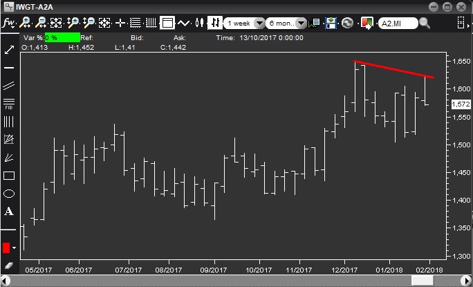 Sempre valido il segnale di acquisto su Atlantia, non entrato la scorsa settimana; ecco i nuovi parametri operativi: buy stop 27.29, 205 azioni, stop loss 26.07, target 28.75.
