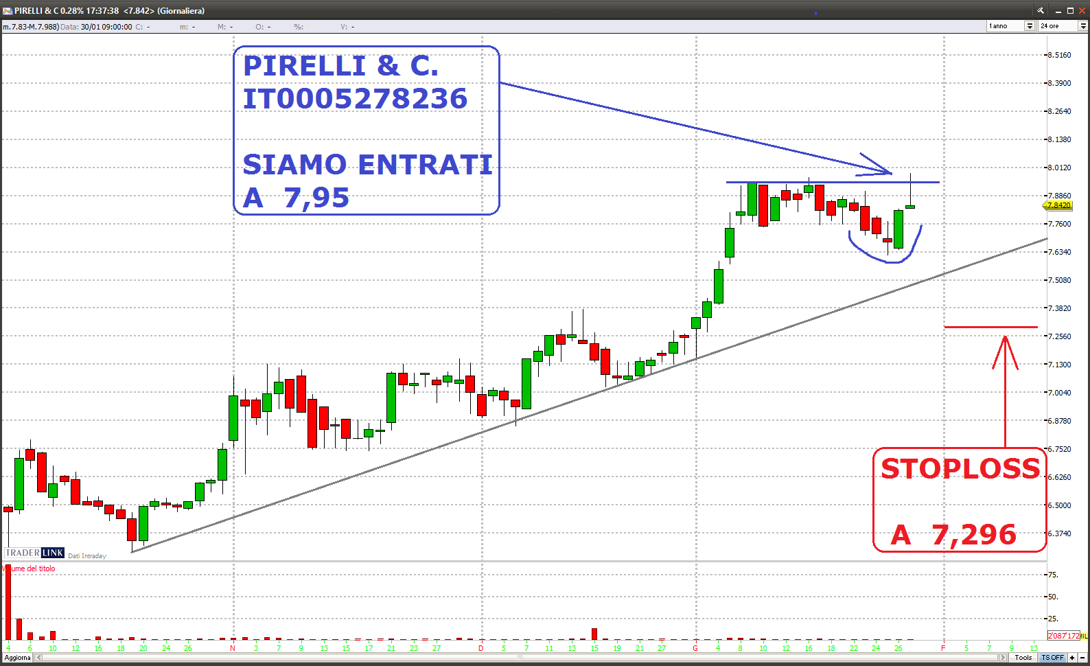 Per concludere, in mattinata siamo entrati in acquisto su 2 titoli italiani, l’azione BB BIOTECH e l’azione PIRELLI, potrebbe essere un controsenso acquistare titoli italiani quando si fatica ad andare a target sugli altri, ma l’occasione è ora, la forza del trend degli indici c’è, manca un po' di ”momentum”.