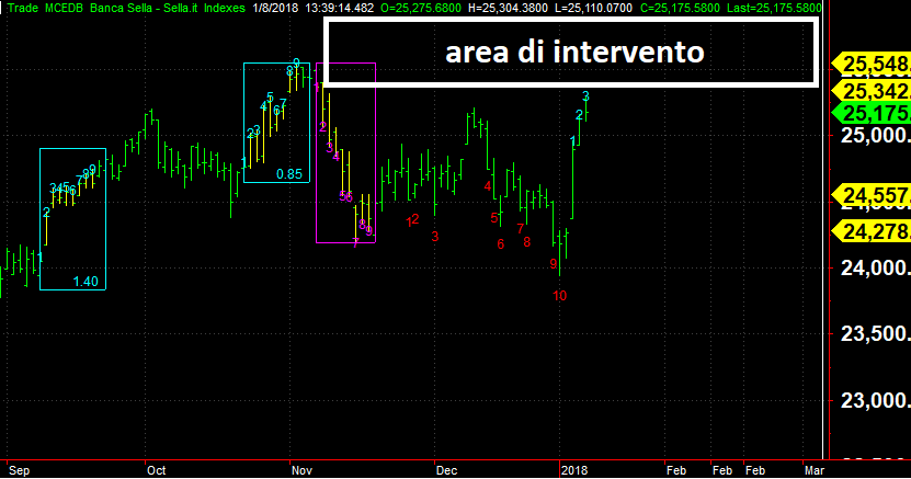 In Borsa si possono consumare pasti per tutti i gusti: c’è chi ama il rischio e si fa l’intraday, chi fa lo swing traing, chi fa il trading di posizione. Noi ci siamo sempre tradizionalmente posizionati a cavallo tra swing trading e posizione perché è questo che vuole il largo pubblico, solo un pugno di eroi vuole l’intraday spinto per poi stancarsi velocemente. Dopo aver azzeccato il rimbalzone fin da momenti non sospetti ora ci troviamo in una situazione di imbarazzo. Infatti inseguire un mercato che sale è quanto meno di professionale ci sia. Conviene aspettare il salutare ritracciamento prima di suonare le trombe del rialzo: è evidente che questa storia non può durare a lungo, prima o poi il mercato si deve fermare un attimo a ragionare. Ecco, quello sarà l’uncino degli uncini perché avverrà sotto il massimo più significativo che ci sia, ovvero quello posto a quota 25.584 del Ftse All Share. La nostra area di intervento quindi è superiore perché c’è la possibilità che ora possiamo tornare negli inferi dove eravamo poco tempo fa e quindi fino a quando non avremo la prova … purtroppo l’analisi tecnica non può emettere la sentenza.