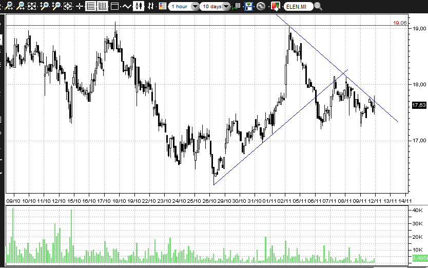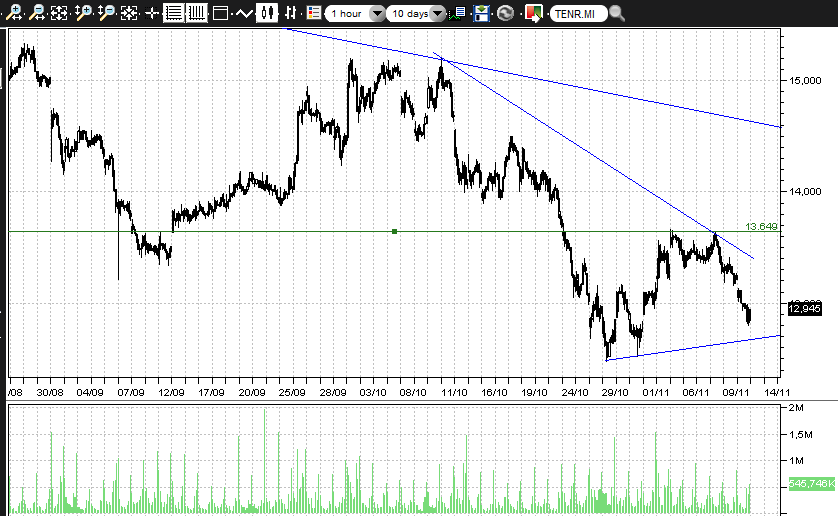 Stesso discorso per Tenaris, dove il volo verso i 14,6 € si è arrestato 1 € esatto al di sotto di tale soglia.