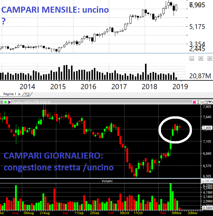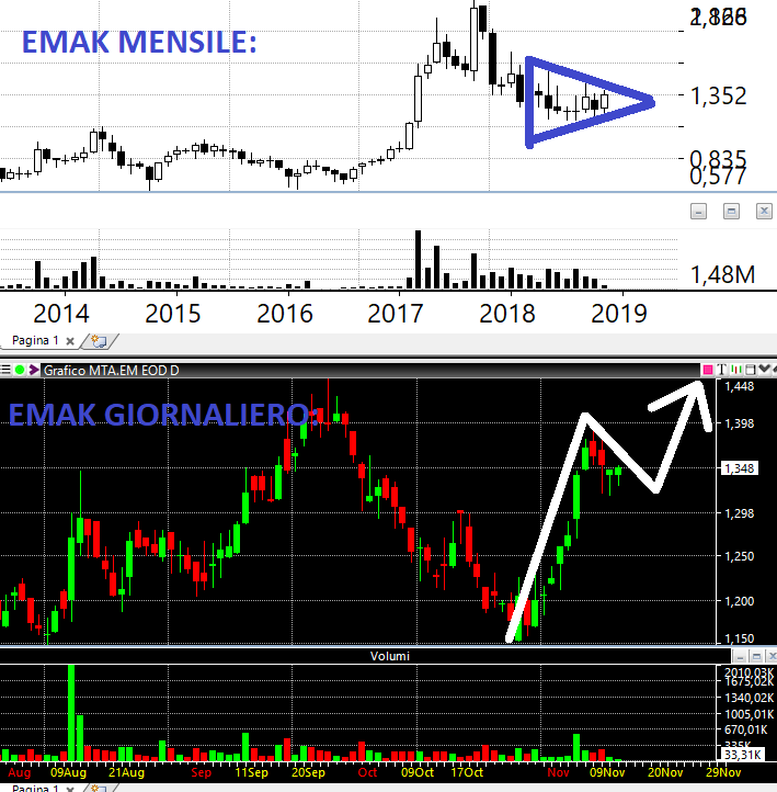 E' inutile che ci nascondiamo dietro un dito: il mercato sta ripartendo e molti titoli mostrano accumulazioni interessanti. Altri, come i 3 che seguono, hanno costruito degli uncini interessanti. Stiamo pronti eventualmente ad entrare nelle prossime ore o giorni ... vediamo come si evolve il mercato.