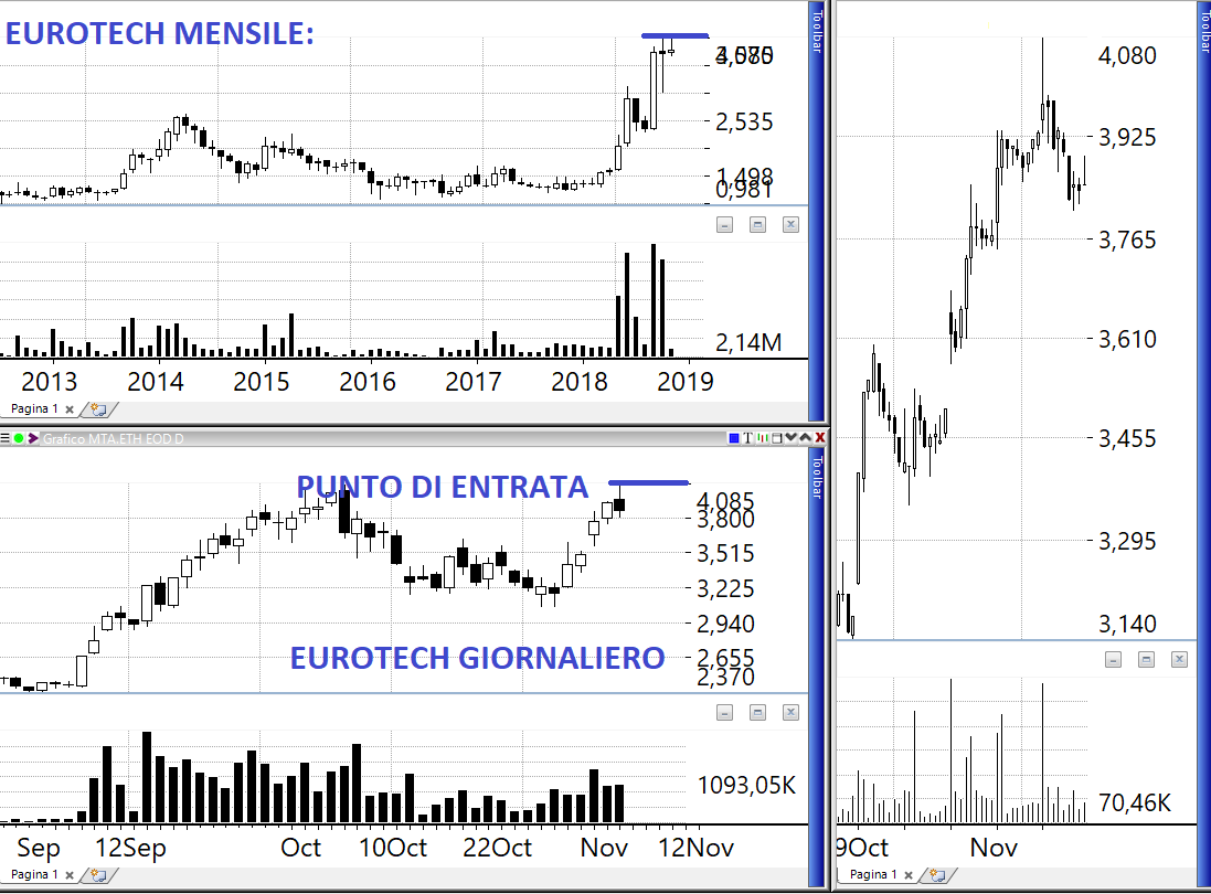 L’unico titolo da tenere sotto osservazione è Eurotech che oggi ha lambito i massimi di periodo. Notiamo i volumi che sono in recupero e quindi sarebbe da comprare a 4.080 stop. Francamente non è una bella cosa comprare durante un ribasso ma questo è un titolo che ha dalla sua delle ragioni fondamentali. Siamo sempre in tempo lunedì mattina, decidiamo di non decidere perché voglio vedere la chiusura di Wall Street stasera.