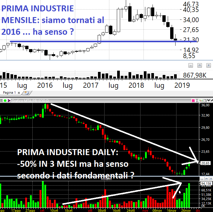 Prendiamo un esempio a caso, quello di Prima Industrie, di cui pubblico di seguito il grafico: