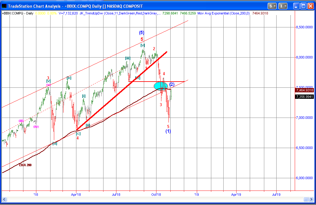 I mercati azionari statunitensi continuano a muoversi in linea con le nostre previsioni. Il calo di cinque onde rispetto ai recenti massimi ha portato a un rimbalzo negli ultimi due giorni e mezzo che si inquadrano perfettamente in un movimento in contro trend che possiamo già etichettare come onda (2) anche se il suo sviluppo potrebbe manifestarsi in modelli più complessi ; flat, triangoli zigzag doppi o tripli restano per ora tutte soluzioni possibili. che potrebbero addirittura traghettarci e rinviare l’onda (3), a gennaio del 2019. Per adesso quindi etichettiamo (2) or A di (2) come visibile nel grafico sottostante.