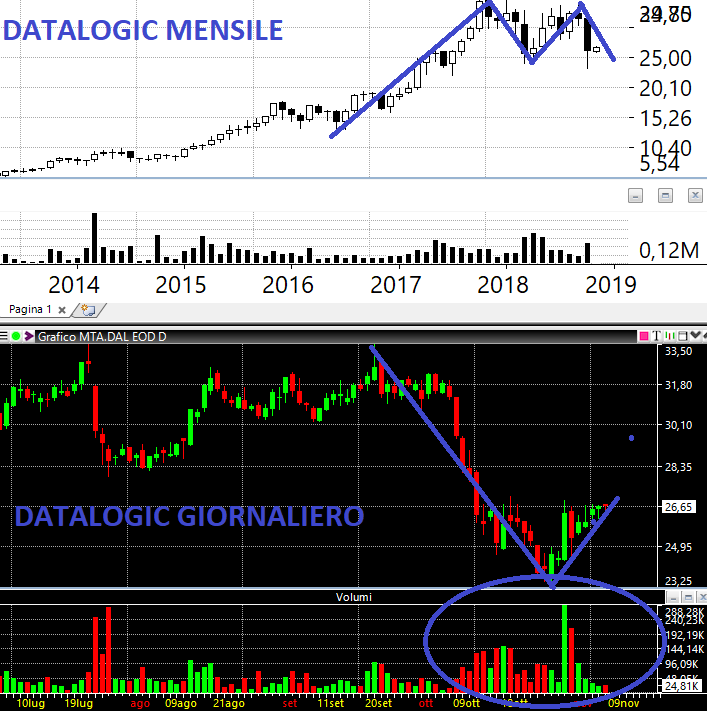 DATALOGIC: anche in questo caso l'accumulazione è evidente e mostra un titolo che qualcuno di grosso compra a man bassa. Mi aspetto un allungo tra breve (segnalazione) verso nord ovviamente ...