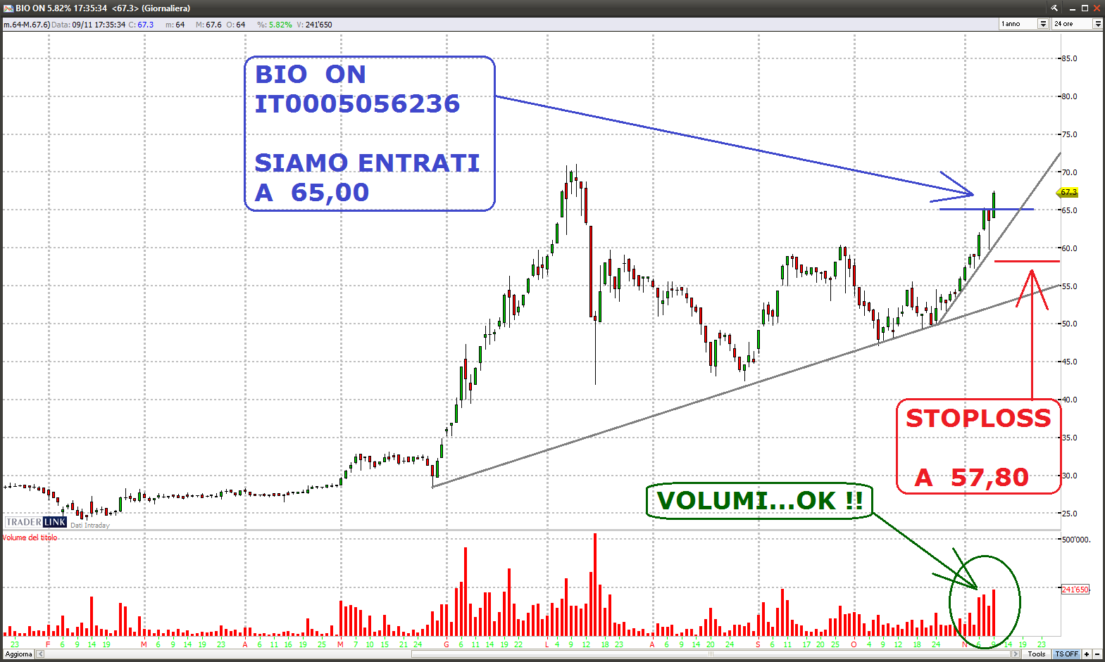 - BIO ON (IT0005056236) A 65,00.