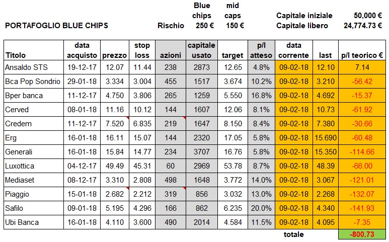 Portafoglio aggiornato alla chiusura di venerdì 9 febbraio: