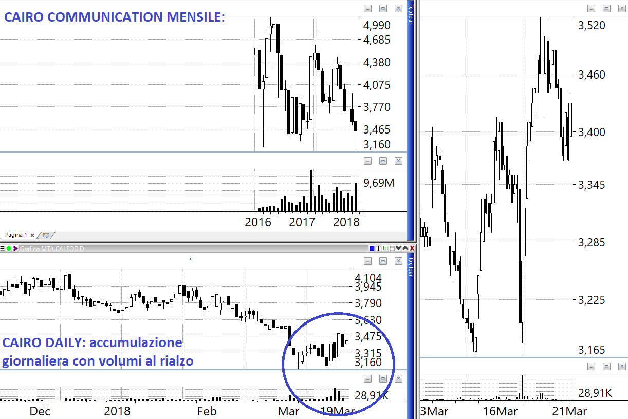 CAIRO: bottom up con ottimi volumi e aria da rovesciamento. Da seguire attentamente se rompe i massimi della congestione si può valutare un acquisto.