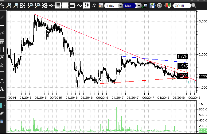 Tornando a ciò che più ci interessa e quindi all'analisi di titoli che entrano nei nostri cuori per motivi spietatamente intraday ma che hanno anche un bel pass per le settimane a venire, ci siamo soffermati nell'analisi grafica dell'azione Go Internet.