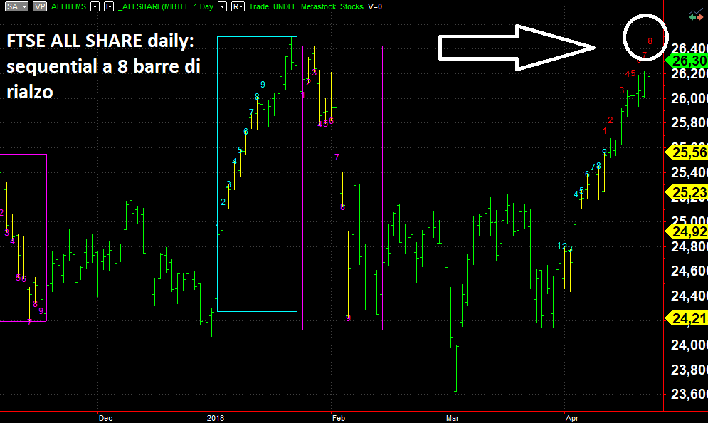 Si aggiunga che sul Nasdaq incombe un Sequential mentre sul Ftse All Share daily il conteggio della morte è già arrivato a 8.