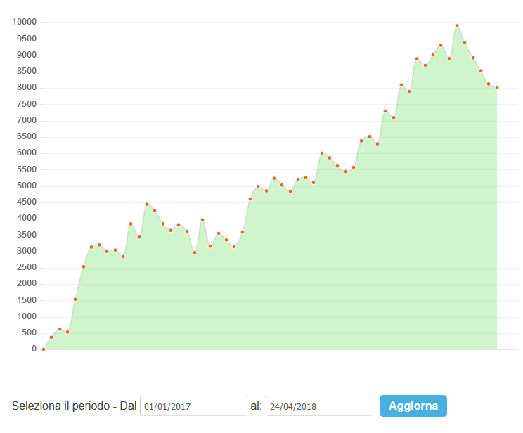 In attesa della riunione della BCE di giovedi prossimo, in materia di tassi di interesse e politica monetaria, procediamo a vista, mentre per quanto riguarda il system sul BUND del servizio FIB al quadrato abbiamo deciso di sospendere l'operatività per il giorno 26 aprile e nei giorni in concomitanza con le riunioni della BCE vista la scoppola presa giorni fa, cosa mai successa da quando il system opera e che, comunque, rimane in forte attivo (v. equity line aggiornata).