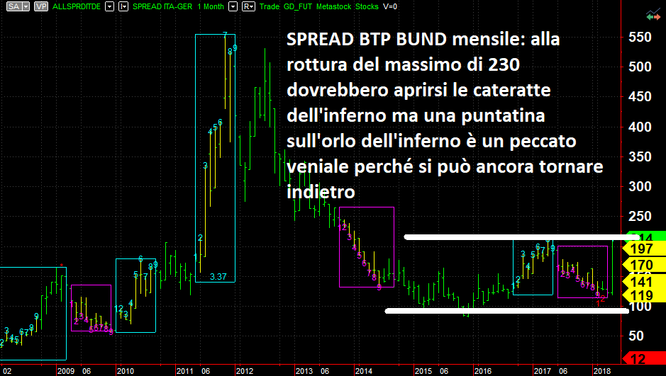 Qualora lo spread BTP BUND dovesse chiudere la settimana oltre 200 e permanere in area disastro ovviamente ne dovremo prendere atto.