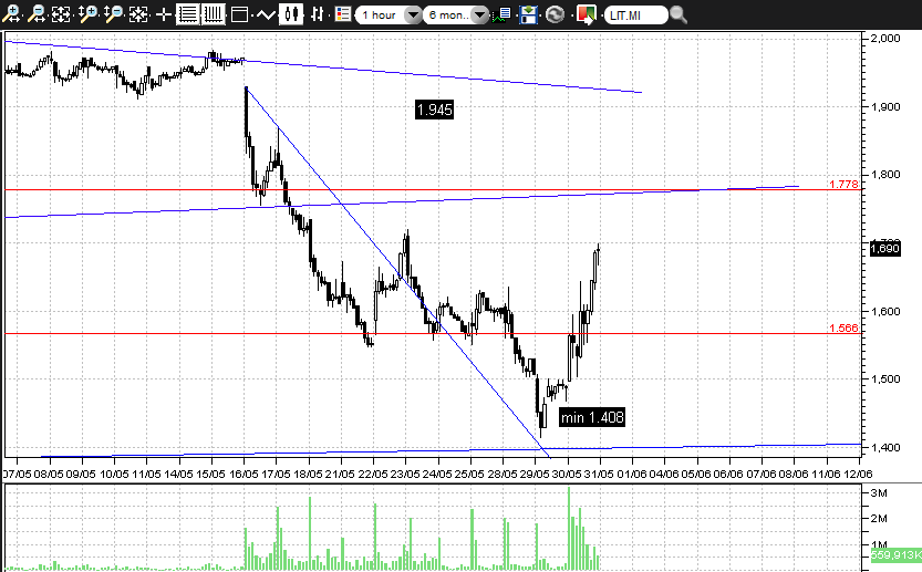 E allora diventa motivo di soddisfazione, ad esempio, valutare come la trendline in area 1,4 € per azione su Retelit abbia costituito il vero punto di rimbalzo del titolo fortemente schiacciato dalle vendite nelle ultime due ottave. (vedi articolo https://www.lombardreport.com/2018/5/23/il-mattino-ha-l-oro-in-bocca/ )
