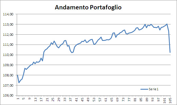 Il portafoglio, che con questa violenta correzione ha oggi un NAV pari a 110,25, ritornerà su livelli normali nel corso del tempo: pertanto dobbiamo metterci il cuore in pace e sopportare la volatilità negativa per un tempo al momento non preventivabile. Certamente non smobilizziamo il debito italico solo per assecondare il panico che è stato scatenato ad arte per “educarci”. No, per vendere ci voglio ragioni granitiche e serie, ci vogliono evidenze concrete e oggettive.