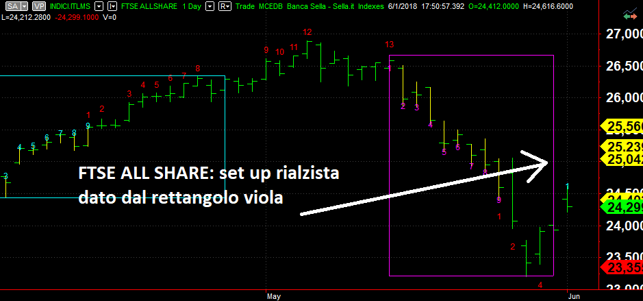Abbiamo quindi due fattori positivi per il rialzo: Set Up rialzista in corso e supportone di 23.600.