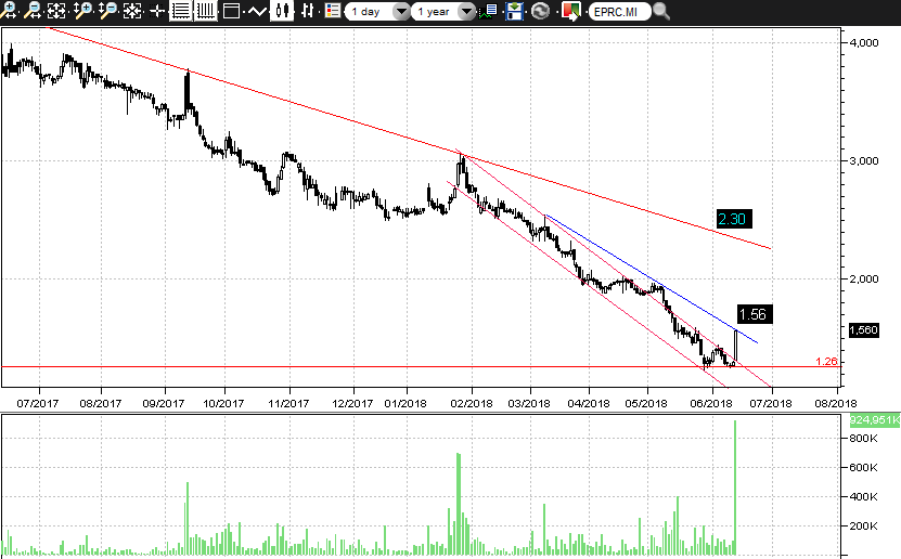 Mi riferisco ad Eprice, che proprio nella giornata di ieri (13 giugno ndr) ha fatto registrare un mega balzo a piazza affari, con un rialzo in doppia cifra percentuale!
