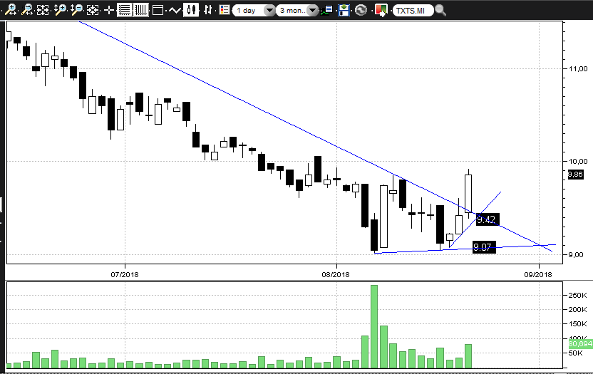 Situazione analoga a TXT e-Solutions in cui, a differenza di Pininfarina, avevamo ipotizzato la formazione di un possibile uncino.