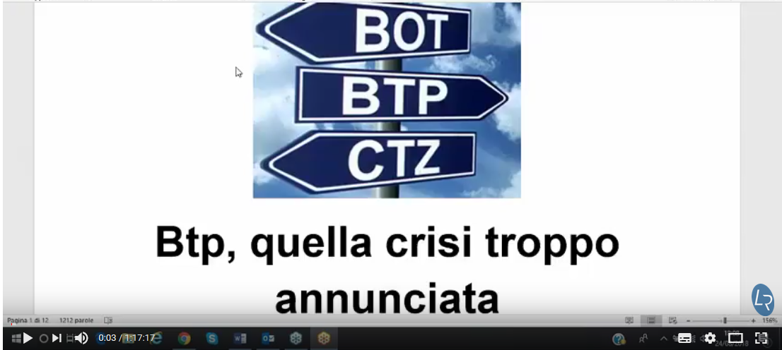 A grande richiesta per tutti coloro i quali non hanno potuto partecipare, lo scorso venerdì 24 agosto, al webinar del nostro collaboratore Dott. Lorenzo Raffo sul tema "BTP: Dramma agostano, come proteggersi da un possibile agguato dei mercati ", vi proponiamo la visione della registrazione cliccando il seguente link: