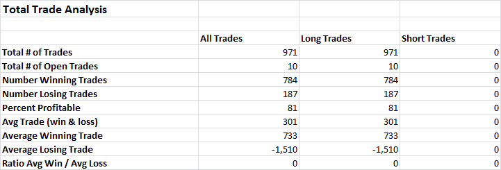 Di seguito i principali dati statistici del sistema Nasdaq 100 Weekly.
