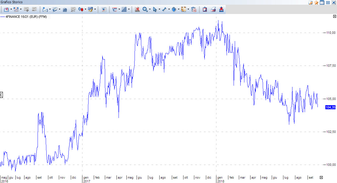 Il bond analizzato è un tasso fisso, collocato a 100,00 a giugno 2016, ISIN XS1417876163, corrisponde una cedola annua dell’11,25%; emesso per un ammontare di 150 Mln Euro, rimborso in unica soluzione alla pari il 23.05.2021. Il bond è negoziabile su OTC per importi minimi di 1.000 Euro.
