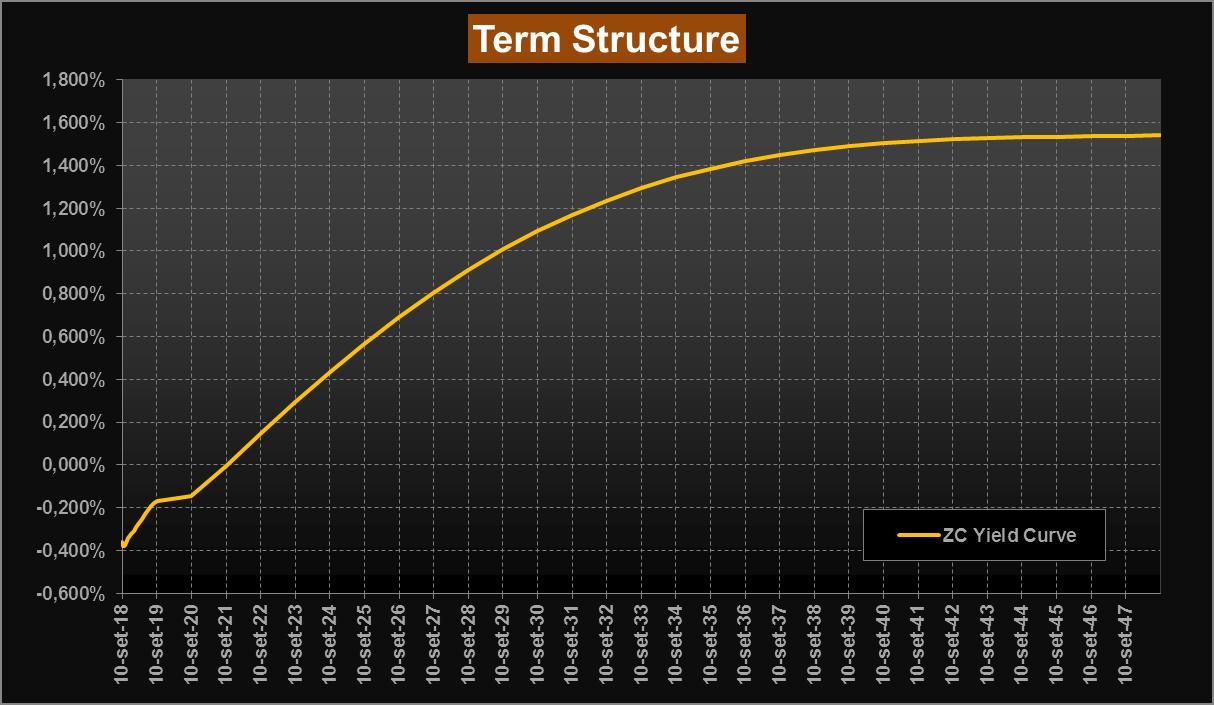 In questo contesto i rendimenti impliciti sono rimasti sostanzialmente invariati rispetto all’ultima analisi precedente la pausa estiva. La nostra consueta lettura del mercato obbligazionario attraverso la ZC-Yield Curve, ci mostra infatti questa settimana rendimenti impliciti fermi rispetto alla scorsa rilevazione. Sul tratto a lunga rimaniamo in area 1,50% per le scadenze dal 2040 per arrivare in area 1,54% per le scadenze dal 2048; sulla scadenza a 10 anni siamo sempre in area 0,90%. Sempre stabile anche la parte a breve che mantiene la sua inclinazione come già osservato nelle precedenti analisi. Piuttosto fermi anche i forward su Euribor 6 mesi, che solo sul tratto a lunga rosicchiano qualche bps portandosi in area 2,06% mentre rimangono piatti sulla parte a breve.