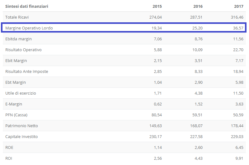 Di seguito solo i parametri di redditività se notate nel 2017 abbiamo avuto in termini percentuali l’incremento maggiore dal 2013 ad oggi.