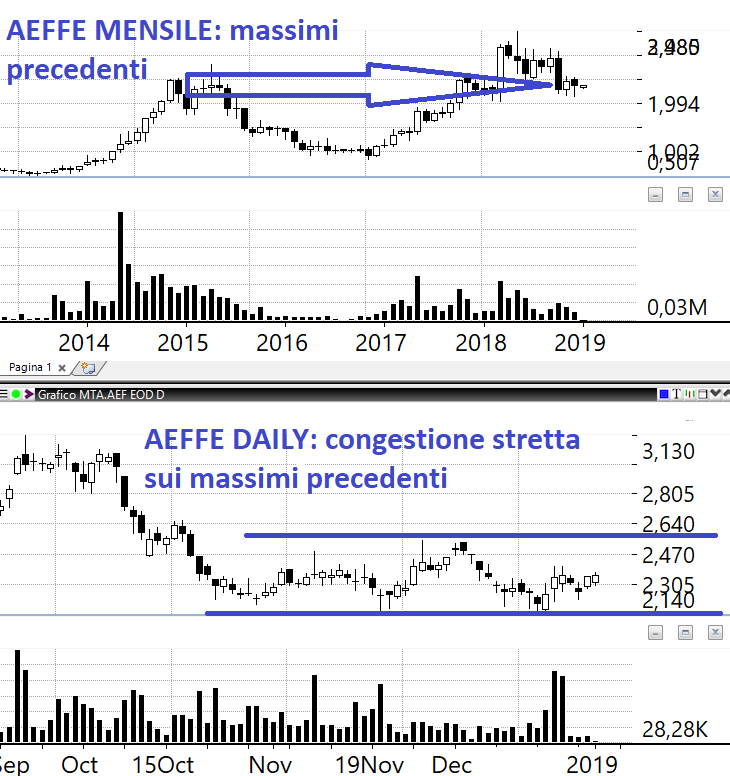 AEFFE: ROE primo semestre 2018 al +8% e quindi redditività non esemplare ma adoro il pattern che sta disegnando sul mensile. E se continua a migliorare sui fondamentali ha anche spazio sul lato tecnico.