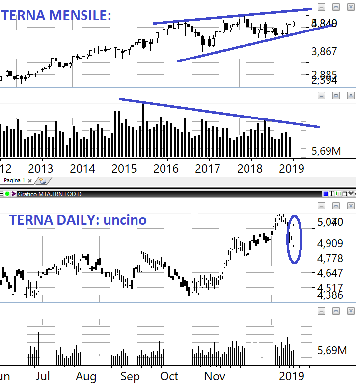 TERNA: ROE del primo semestre 2018 a +18% e ROE annuali degli ultimi 3 anni sempre a pari livello. ROI dimezzato rispetto al ROE ma essendo società che si occupa di reti è normale che abbia un attivo corposo. Tecnicamente sta disegnando un gradevole uncino.