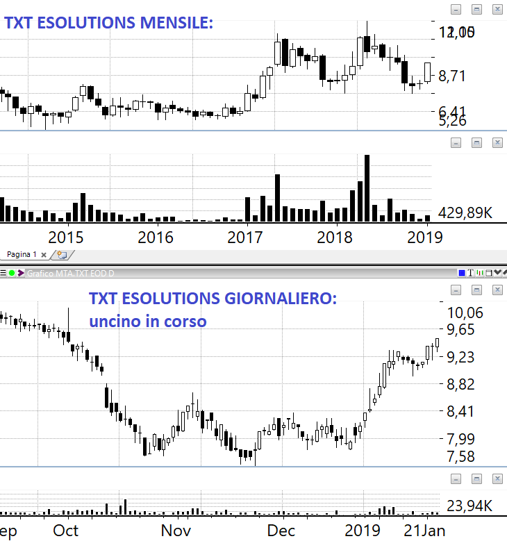 TXT E-SOLUTIONS: fondamentalmente ha un upside secondo gli analisti di quasi il +30% e il patter è quello solito di bottom up. Questa si potrebbe comprare anche domani ma permangono le solite considerazioni relativamente all’andamento del mercato.