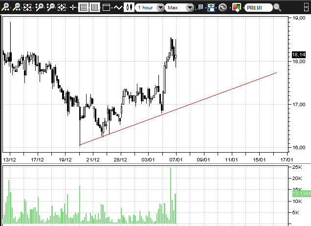 Stesso discorso per l'ennesimo rimbalzo in vista per Prima Industrie.