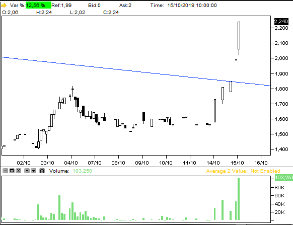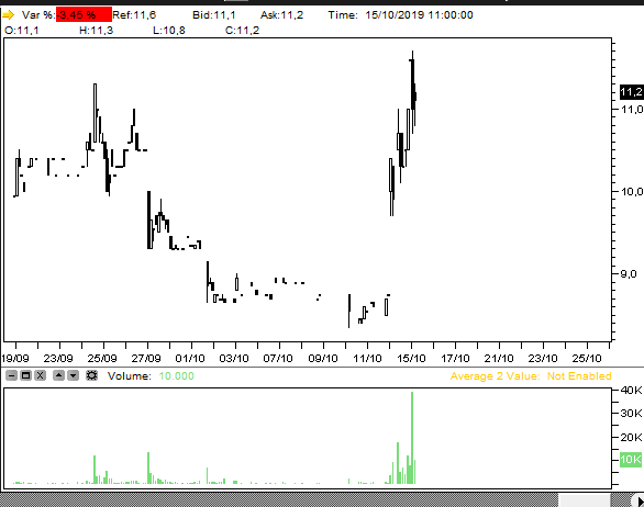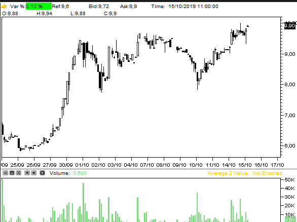 Dopo il rialzo del 32% messo a segno nella giornata di ieri ( lunedi 14/10 NDR) notiamo come la fascia di prezzo 9.50€ sia stata una zona di sedimentazione per molte sedute.