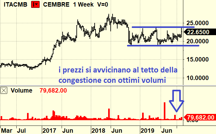 Segnaliamo Cembre che ha ottimi fondamentali con una costanza nella generazione di reddito molto particolare. Questa azione compare sia nell’elenco dei migliori per apprezzamento sia nell’elenco di quelli migliori per incremento dei controvalori scambiati. Se i prezzi dovessero rompere quota 24 euro assisteremmo ad una rincorsa al rialzo.