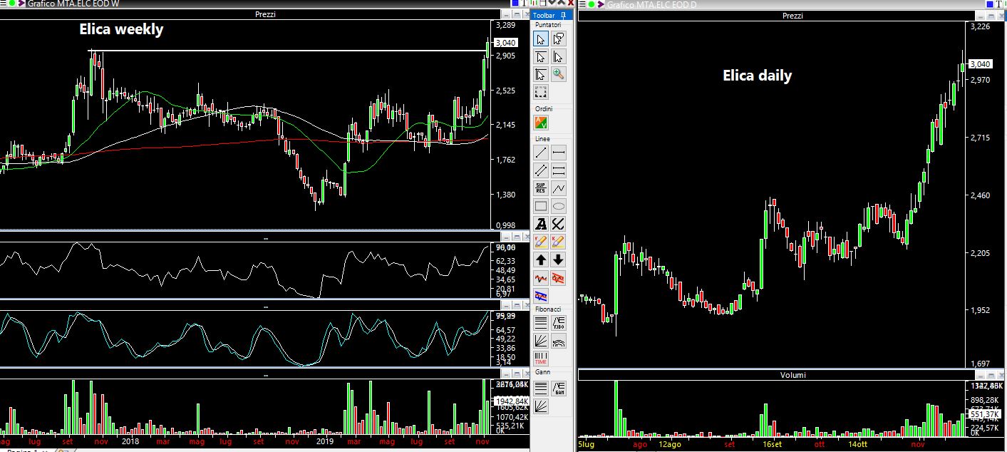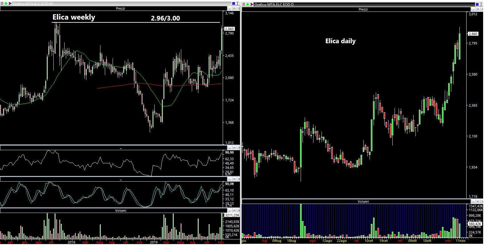 Il titolo è entrato in contrattazione lunedì, dopo un collocamento al prezzo di 1.71 euro. Dopo un primo test di quei livelli, abbiamo subito avuto una breve compressione di volatilità in area minimi e successivamente una risalita esplosiva. Ipotizzando una entrata long in area 2.20 (il close di venerdì è stato a 2.16) e non volendo utilizzare uno stoploss grafico che collocherei a 1.80 (sarebbe uno stop del 20% !) si può pensare di rivedere la view long nel caso di ritorno sotto 1.95 euro in chiusura di seduta, quindi con uno stoploss attorno al 10% (un pò più umano). Naturalmente trattasi di titolo senza una storia grafica alle spalle, neoquotato, dell'AIM ed iper speculativo. Spero di essermi spiegato.