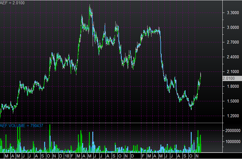 Evidenziamo un grafico a 5 anni che ci racconta di una Aeffe in rimbalzo ed anch'esso con ottimi volumi di scambio.