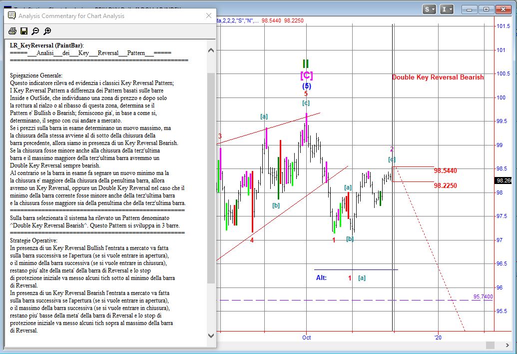 Sul Dollar Index Chiude l’ottava con un bel Double Key Reversal Bearish confermato dall’Euro che fa un Double Key Reversal Bullish. Può essere l’inizio di onda 3 e se l’euro confermerà la rottura al rialzo di 1,11 una schippettata con stop a 1,0950 ci sta bene. Pochi soldi e un po’ di leva ci dovrebbero regalare la befana. ISIN XS1265958915