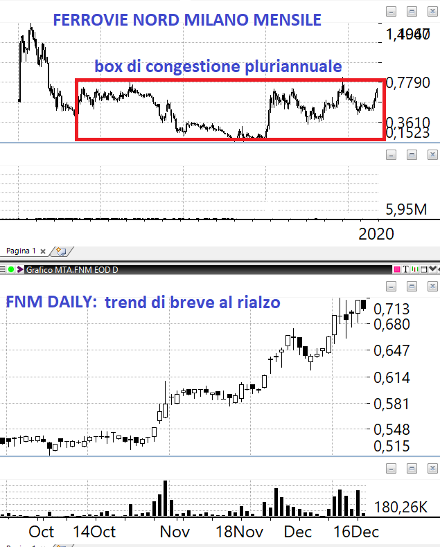 FERROVIE NORD MILANO: se guardate il GRAFICO daily viene da comprarla domani. In realtà se guardate il monthly vi rendete conto che siamo ancora dentro la banda orizzontale di oscillazione e soprattutto che sul fronte fondamentale non siamo ancora una società con quella “durability” degli utili che piace a noi