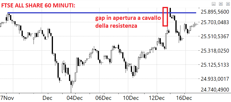 Purtroppo dopo due giorni se vogliamo avere ragione quella barra che riproduciamo qui sotto in intraday può significare soltanto che siamo in una situazione in cui “qualcuno” (ovvero i soliti noti, l’omino nero, le mani forti, the big dogs, the smart money, chiamatela come vi pare, anche gli amici degli amici in omaggio alla compianta DC) ha cercato di spingere l’indice italiano oltre la resistenza della congestione in concomitanza degli altri indici europei senza però riuscirci. O volendo apposta non riuscirci per creare un enorme trappolone per Tori. E loro comprare a mani basse proprio mentre tutti in serata uscivano in stop.