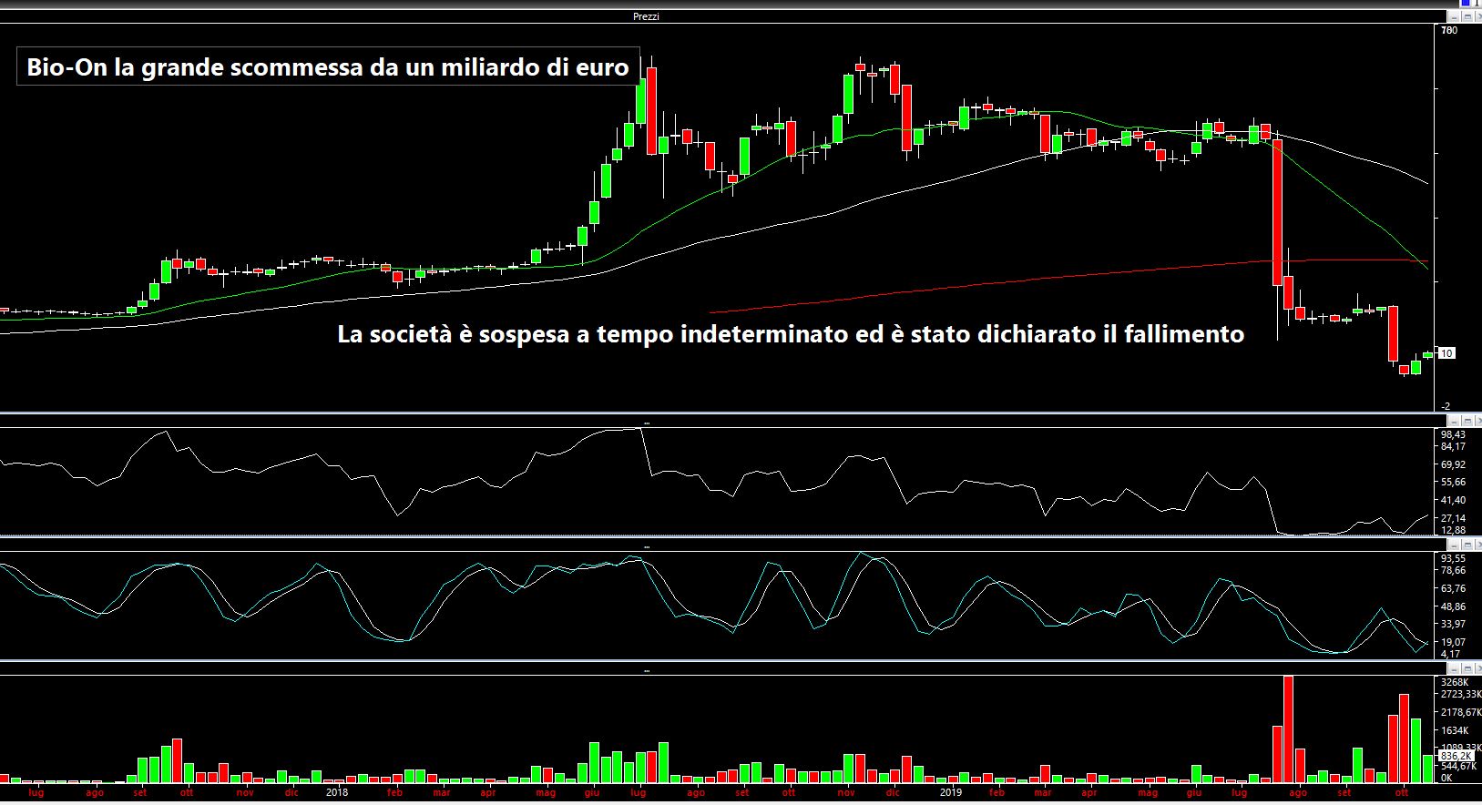 E dopo Marilyn Monroe è comparsa purtroppo anche Marilyn Manson, di cui ho prontamente scritto, mettendo in evidenza la perdita di forza del titolo diversi mesi prima dello schianto/fallimento. Mi riferisco al caso di Bio-On, l'unicorno dell'AIM che si è però schiantato, su cui già a metà maggio scrivevo: