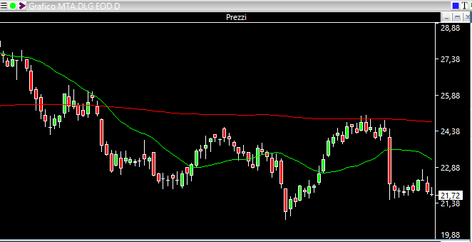 Dopo una settimana la ritroviamo nel grafico seguente. Dopo che il titolo ha provato un recupero a inizio settimana, adesso sembra deciso a riprovare un affondo verso sud.