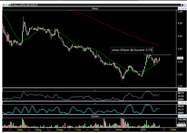 Il 28 Gennaio 2019 scrivevo: ha completato un 1-2-3 ed ha un'area chiave da bucare a 3,75...non liquidissima ma se il mercato non gioca brutti scherzi un tentativo verso i 4 euro ci starebbe tutto visto che passa la media a 200 periodi. Il titolo era così: