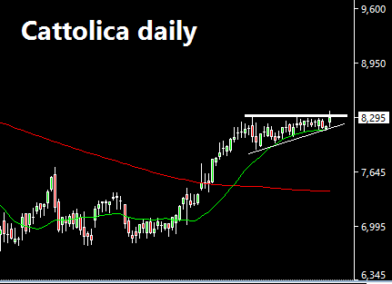 Scrivevo: Anche se i volumi non mi entusiasmano, continuiamo a congestionare a ridosso dei massimi storici, seppur con swings notevoli. Ai valori attuali il titolo quota 10.60 euro circa, mentre il massimo storico è collocato a 11.15 euro, quindi percentualmente parlando siamo a circa il 5%. Da valutare eventuali allunghi, possibilmente con compressioni di volatilità anche su timeframe ridotti in modo da minimizzare il rischio.