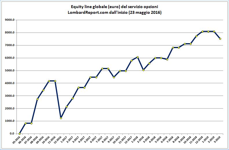 la scadenza di marzo si è archiviata con una piccola perdita cumulata tra le due strategie: circa 550 euro complessivi. un trend così direzionale come questo non si vedeva davvero da un pezzo e quindi siamo comunque soddisfatti del contenimento della perdita.