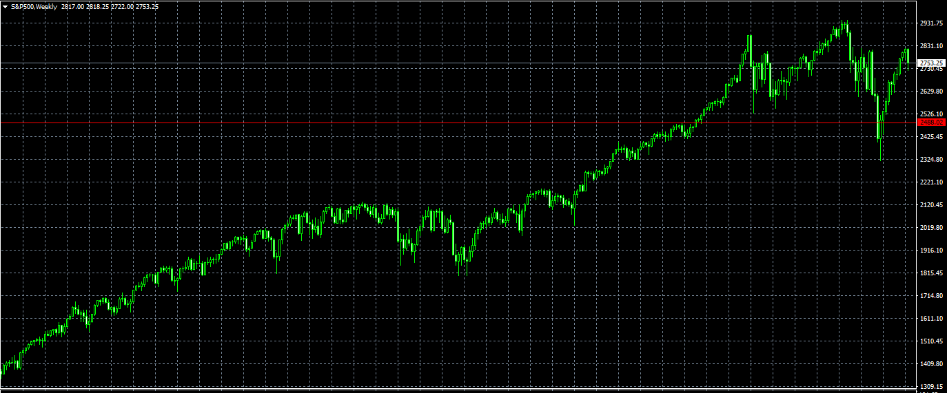 La stessa cosa capita anche in USA e qui Vi posto il chart dell'S&P500 WEEKLY.
