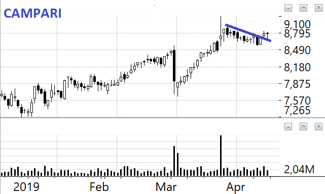 CAMPARI: l’avevamo consigliata illo tempore su queste colonne e nonostante i drittoni al ribasso è sempre più alta. E con la barra di shake out di venerdì ci sta dicendo che vuole continuare a salire.