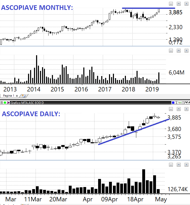 ASCOPIAVE: Titolo di un settore ingessato presenta un ROE stabilmente al +10% e una crescita costante di fatturato. Tecnicamente è sui massimi storici.