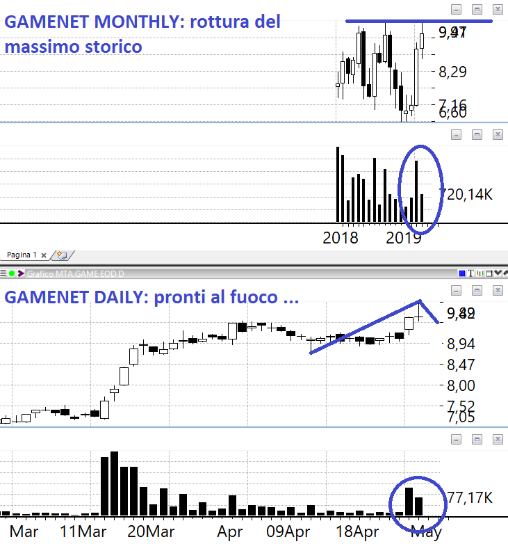 GAMENET: è il nostro prossimo buy, ci avviciniamo ai massimi storici e qui che entriamo in azione. A dire il vero ci siamo persi questo movimento, ma se il quadro rialzista è vero siamo solo all’inizio. Pronti al fuoco.