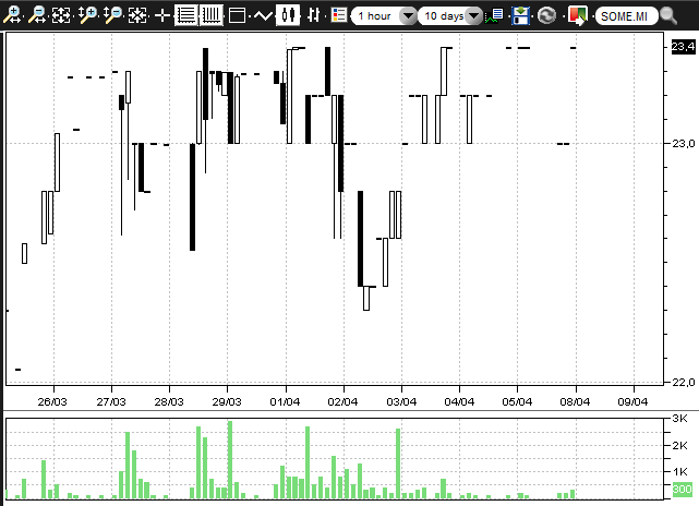 Con enorme sorpresa, mi sono trovato book di contrattazione dell'Aim, come SOMEC ad esempio, che contemplano l'utilizzo del lotto minimo, tale per cui, con i nuovissimi tick, si salta, sottolineo con 1 solo lotto, di ben 20 € per tick!